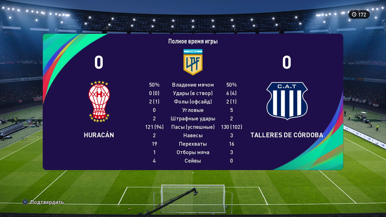 - после 60 минут второго тайма: счет который был до вылета сохраняется и в качестве доигровки играется время, которое осталось плюс 5 минут добавленного времени (например, вылетело на 78 минуте, играете 12+5 минут игрового времени), установка времени матч 10 минут, далее соперники делают скрин статистики и голов. На этом матч окончен и вносится результат с оформлением матча.