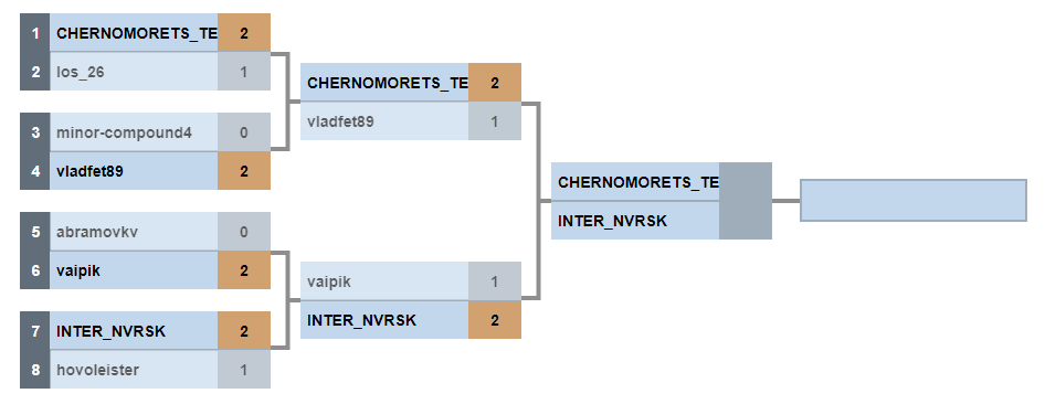 При оформлении указываем ники, команды и счёт. Игры - в любом порядке, без дисквалов. Скрин - только счёта.