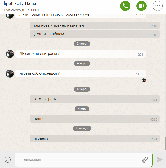 тур надо было сыграть 2- 4 июня. пишу ему с 3го. он написал один раз в 7 утра- спросил когда сегодня сможем. в этот день больше не отвечал.