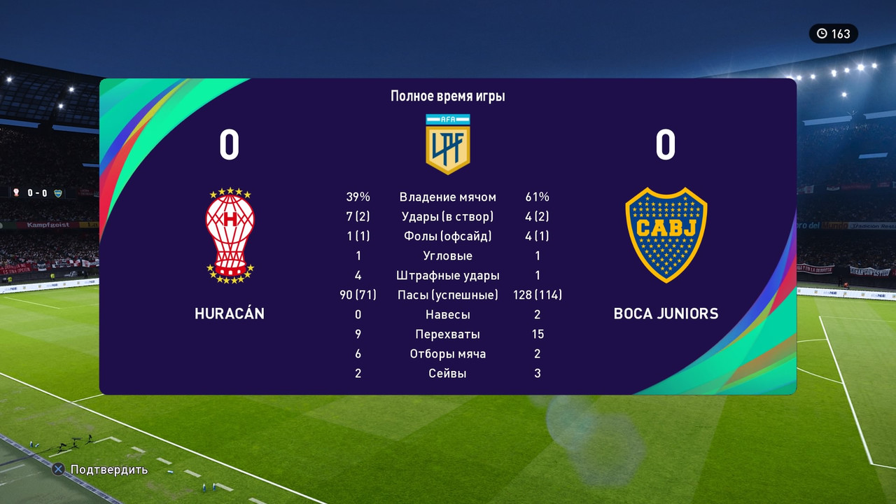 - после 60 минут второго тайма: счет который был до вылета сохраняется и в качестве доигровки играется время, которое осталось плюс 5 минут добавленного времени (например, вылетело на 78 минуте, играете 12+5 минут игрового времени), установка времени матч 10 минут, далее соперники делают скрин статистики и голов. На этом матч окончен и вносится результат с оформлением матча.