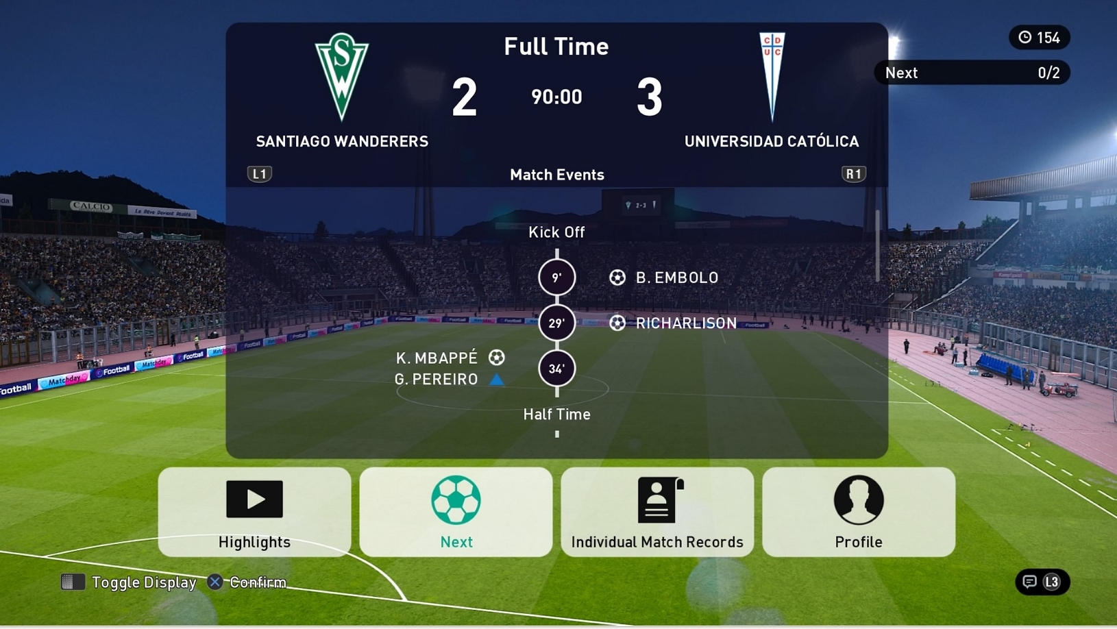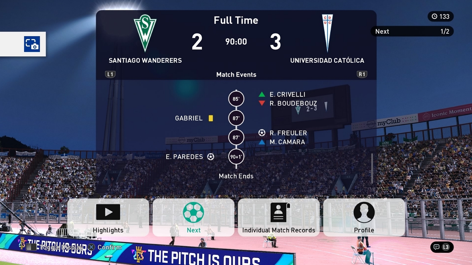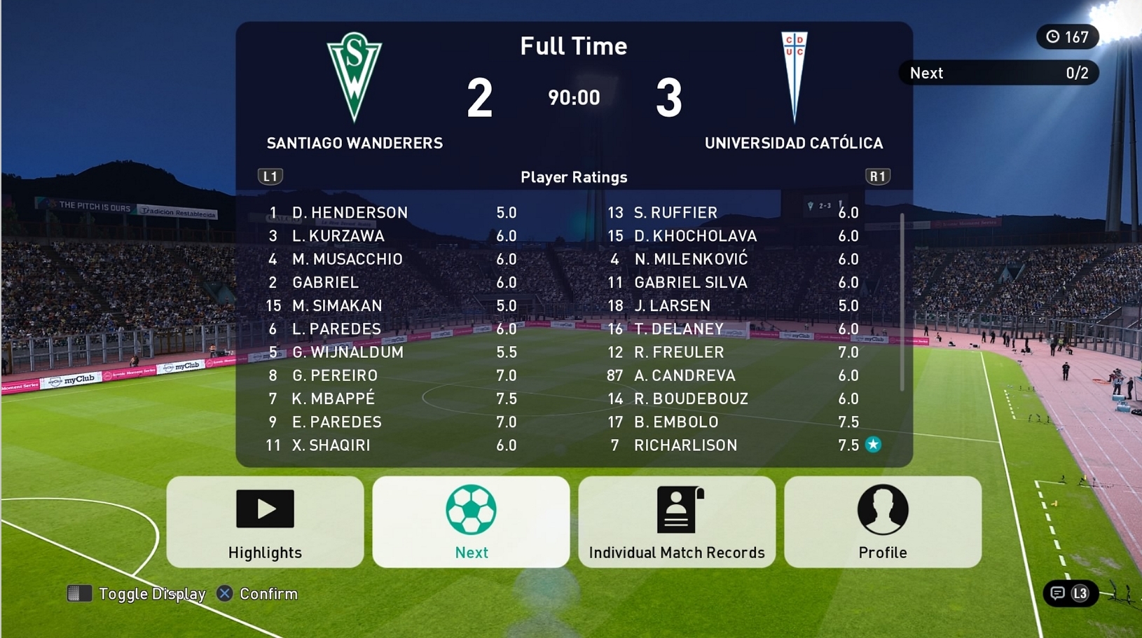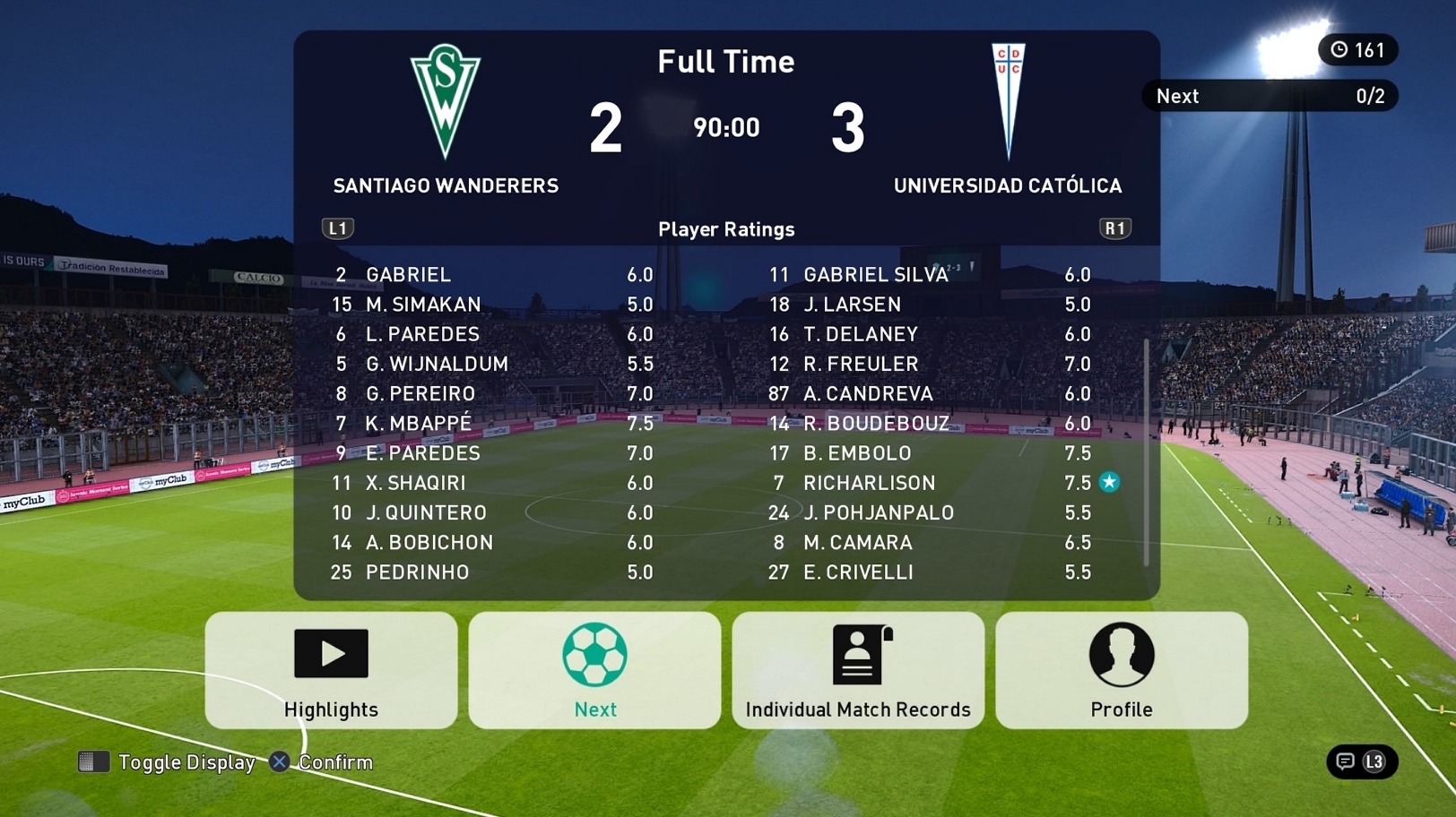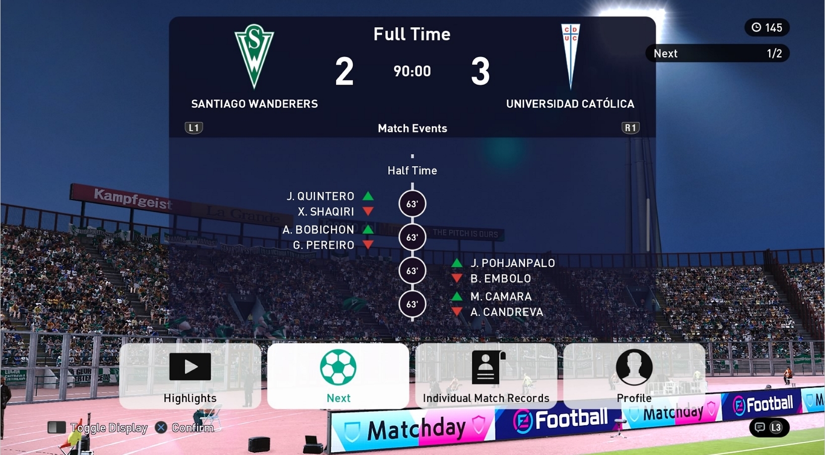 Santiago Wanderers 2 : 3 Universidad Catolica
