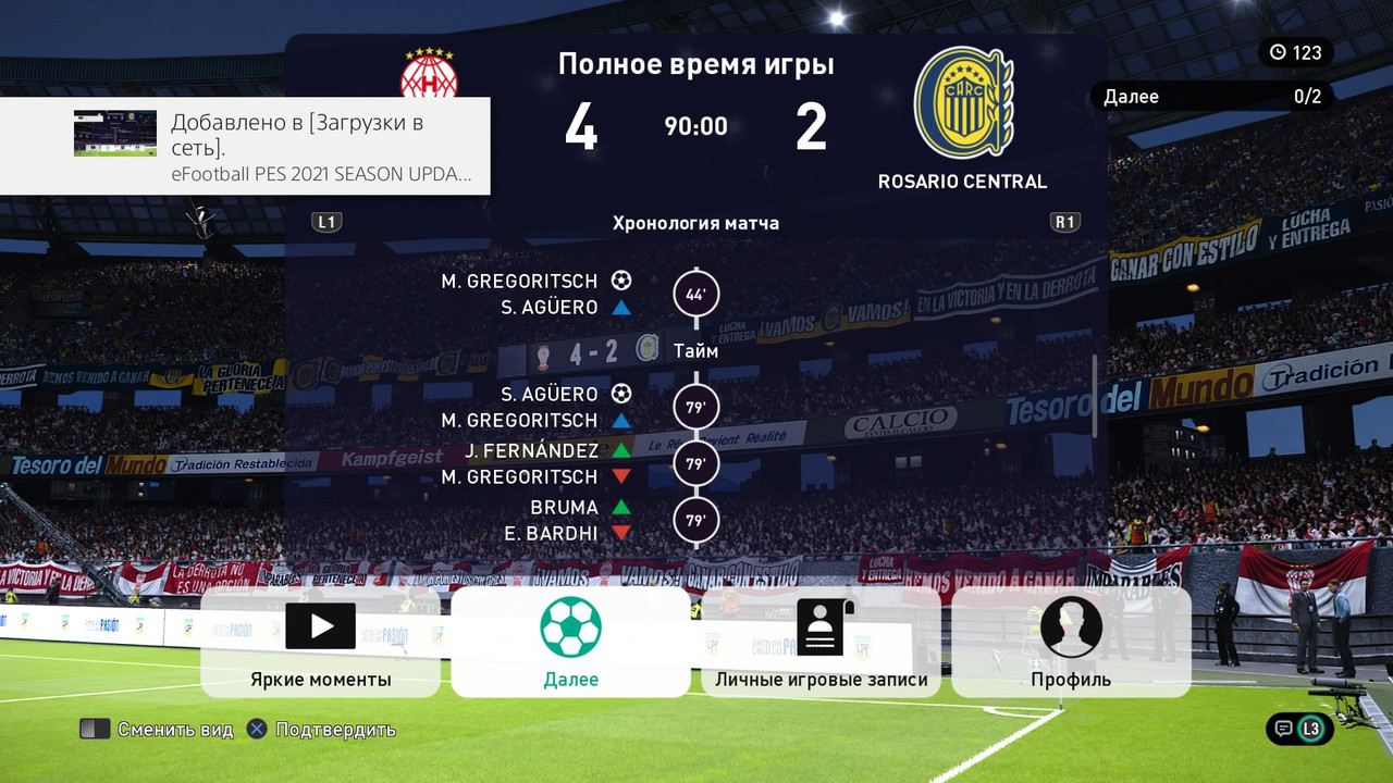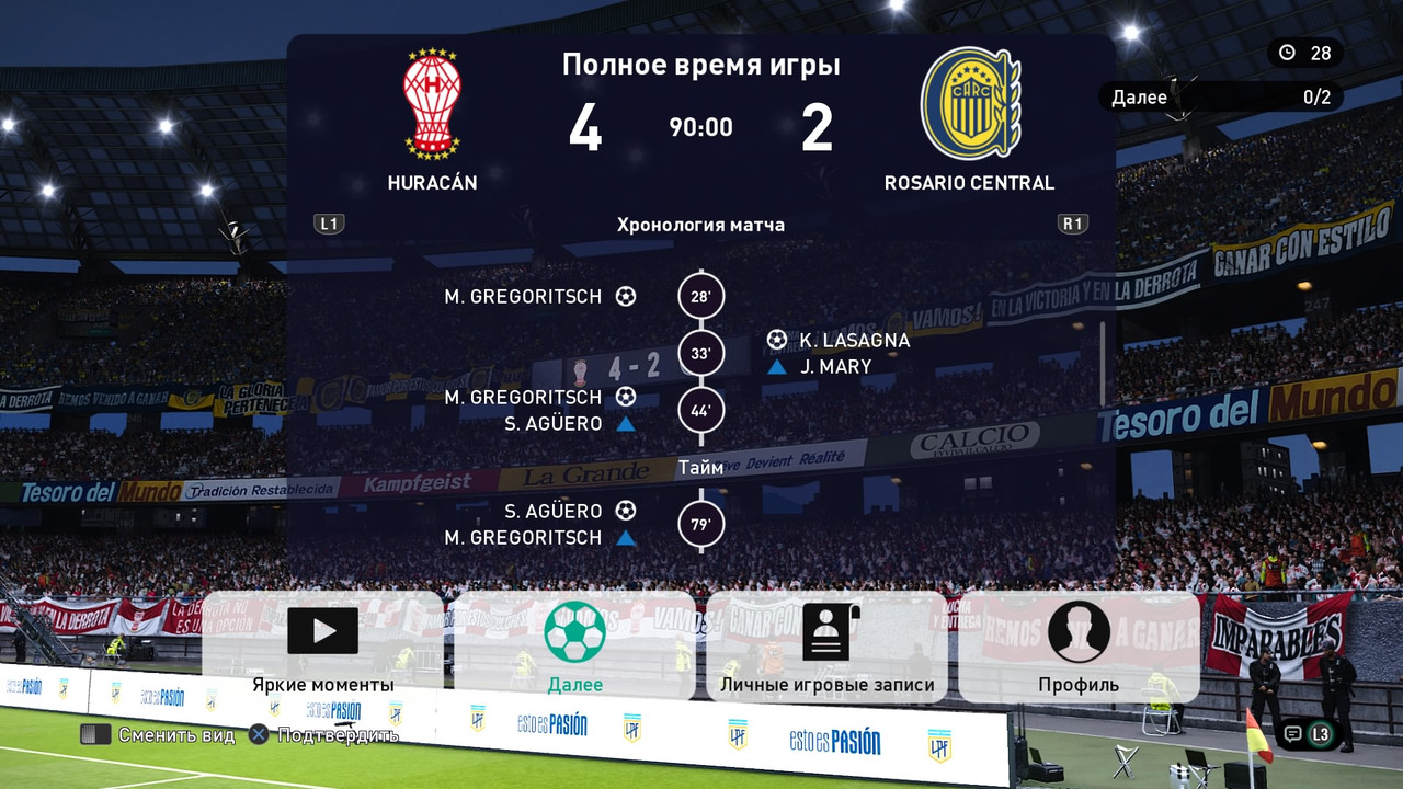 - после 60 минут второго тайма: счет который был до вылета сохраняется и в качестве доигровки играется время, которое осталось плюс 5 минут добавленного времени (например, вылетело на 78 минуте, играете 12+5 минут игрового времени), установка времени матч 10 минут, далее соперники делают скрин статистики и голов. На этом матч окончен и вносится результат с оформлением матча.