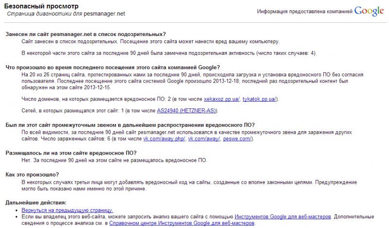 На поддомене pes5.pesmanager.net Вашего сайта PesManager.net обнаружен код, который может быть опасен для посетителей. Выполнение этого кода может привести к заражению компьютера опасными программами, использованию его без ведома пользователя, порче или краже данных.