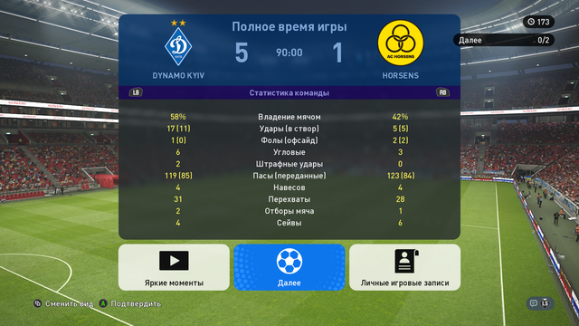 Dynamo Kyiv 5 : 1 Horsens