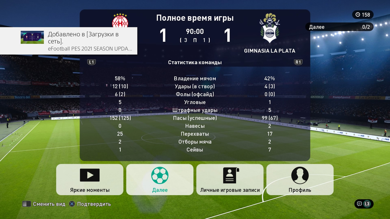 1. Скрин с отображением полной статистики матча каждый тренер выкладывает по желанию! Но его наличие приветствуется! Пример: