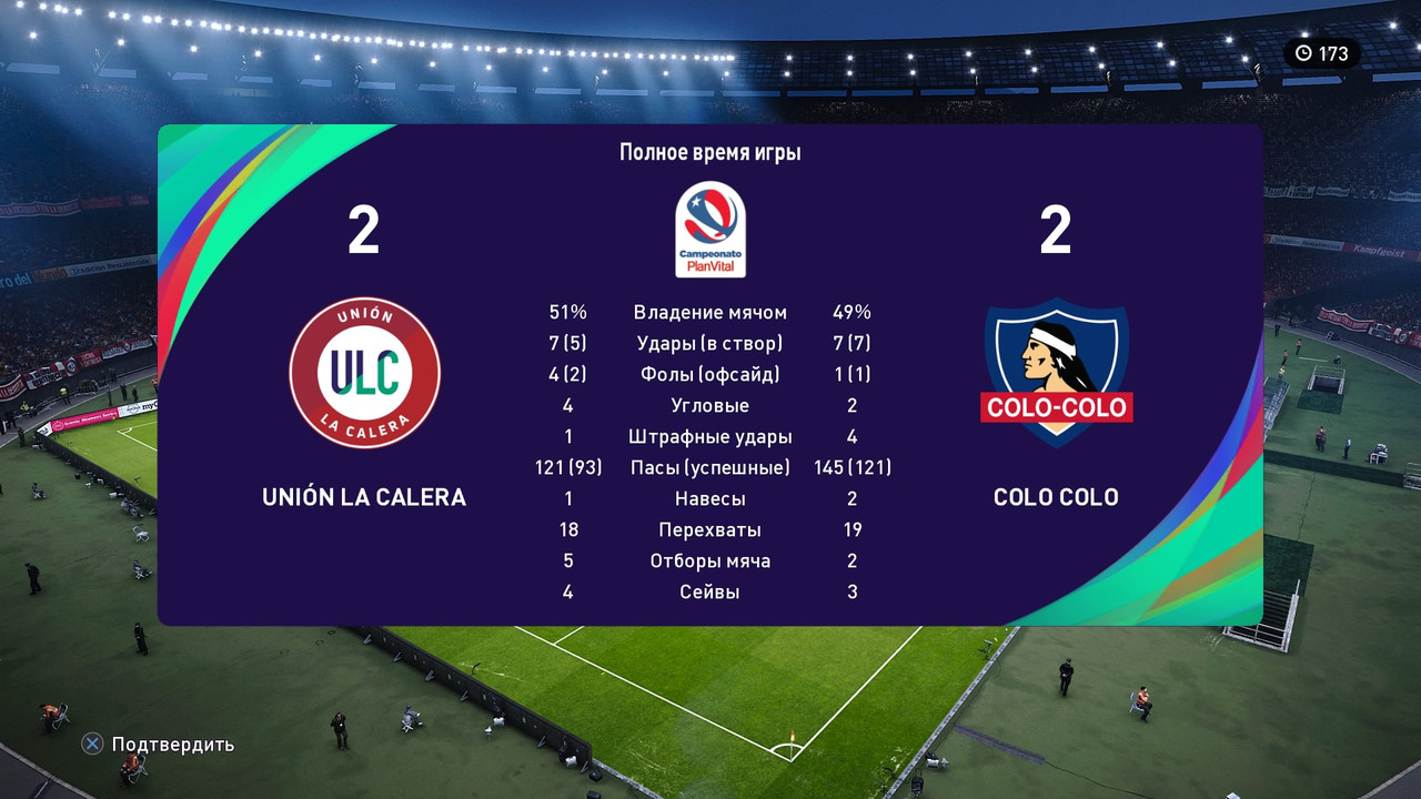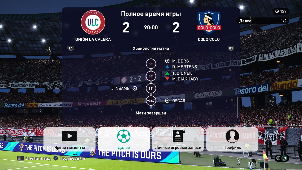 - после 60 минут второго тайма: счет который был до вылета сохраняется и в качестве доигровки играется время, которое осталось плюс 5 минут добавленного времени (например, вылетело на 78 минуте, играете 12+5 минут игрового времени), установка времени матч 10 минут, далее соперники делают скрин статистики и голов. На этом матч окончен и вносится результат с оформлением матча.