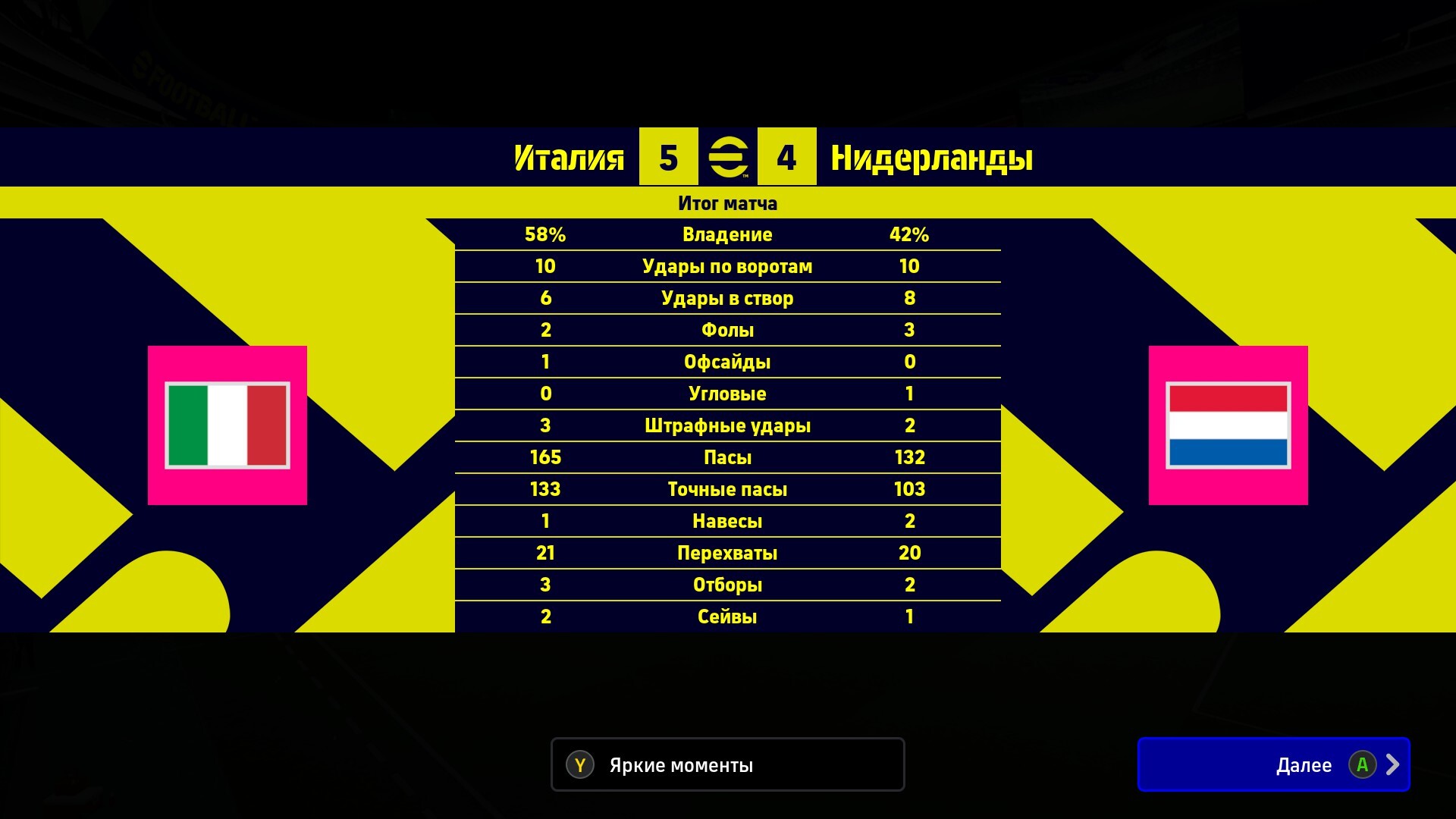 - после 60 минут второго тайма: счет который был до вылета сохраняется и в качестве доигровки играется время, которое осталось плюс 5 минут добавленного времени (например, вылетело на 78 минуте, играете 12+5 минут игрового времени), установка времени матч 10 минут, далее соперники делают скрин статистики и голов. На этом матч окончен и вносится результат с оформлением матча.
